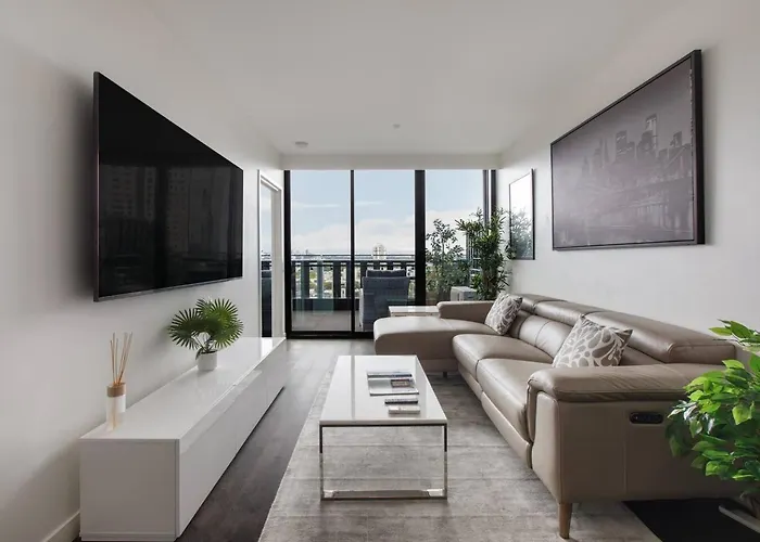 広々とした寝室2室のメルボルンThe Clarke - Sophisticated Southbank Livingアパートメントはメルボルンの中心に位置し、南メルボルン市場から徒歩でわずか6分です。 屋内プールを利用でき、よりリラックスした滞在を楽しむことができます。